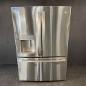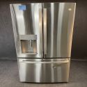 Refrigerador GE de 27.7 pies cúbicos y 35.75 pulgadas de ancho con puerta francesa y dispensador en acero inoxidable antihuellas - GFE28GYNFSC