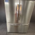 Abolladuras en la parte superior de la puerta del refrigerador izquierda y en la parte inferior de la puerta del congelador, abolladuras en la parte posterior derecha y rasguños en el lado izquierdo.