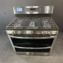 Cocina de gas GE Profile de 6.7 pies cúbicos con doble horno, convección, freidora de aire y 5 quemadores en acero inoxidable PrintRes - PGB965YPFSC