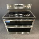 Cocina eléctrica inteligente GE Profile de 76 cm (30") con doble horno, superficie lisa, convección y freidora de aire, en acero inoxidable - PB965YPFS